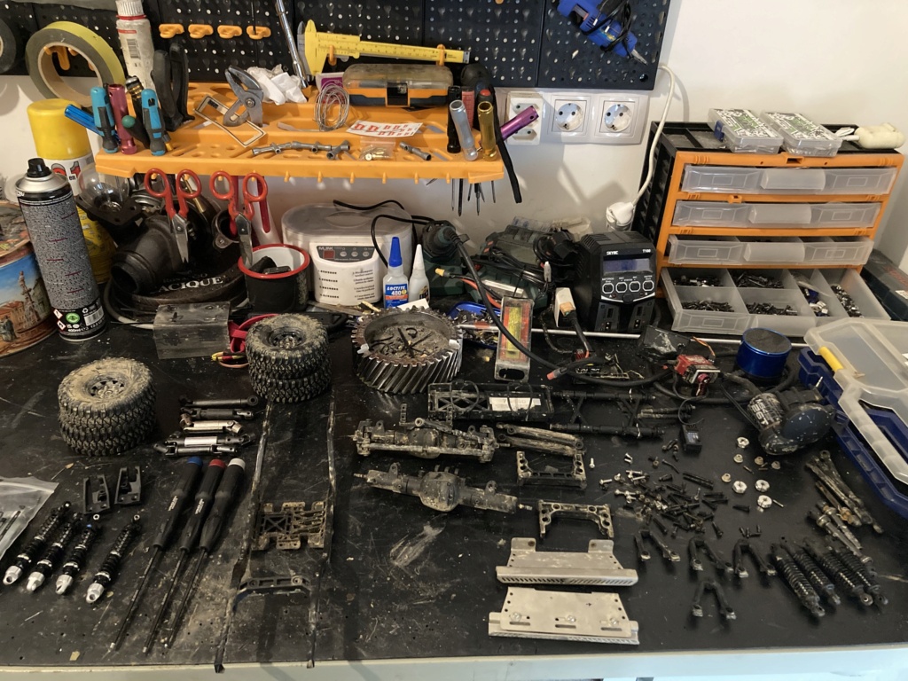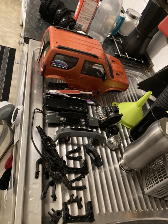 A přestože byl velmi dobře udržovaný, rozebral jsem ho, vše vyčistil a znovu smontoval s nerezovými šrouby, tlumiči INCISION, motorem RC4WD 45T, servo MOB, články byly ručně vyrobené s kulovými klouby TRAXXAS a pár dalších věcí.